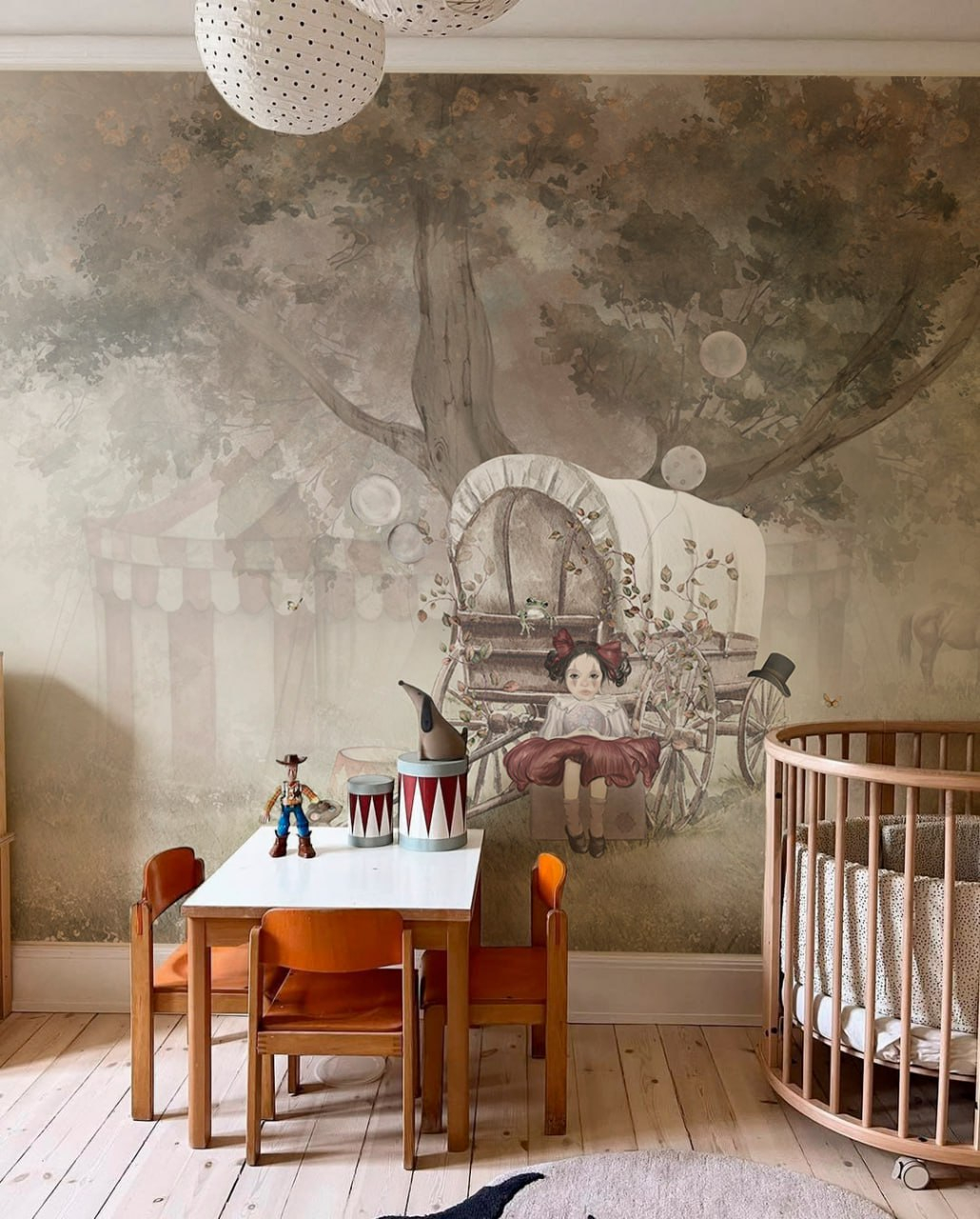 Designul este gândit pentru a funcționa ca un tapet imersiv, cu un efect 3D discret, care oferă profunzime și transformă peretele într-un accent de design memorabil. Acest fototapet 3D se integrează perfect într-o cameră de copil, dar poate fi folosit cu succes și ca tapet dormitor, tapet living sau chiar în hol de intrare, pentru un decor contemporan cu aer artistic. Ilustrația delicată contribuie la înfrumusețarea camerei și creează o experiență vizuală unică.