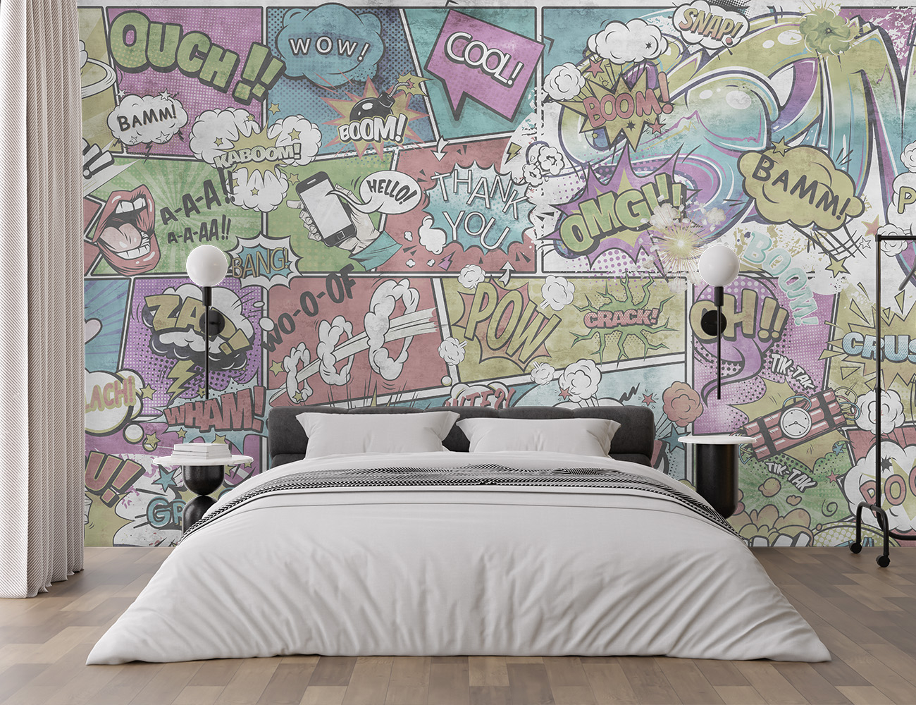 Fototapet „Pop Art” este alegerea ideală pentru cei care caută un decor modern, plin de energie și culoare, inspirat din stilul grafiti și benzile desenate. Acest design vibrant transformă orice spațiu într-un punct central de interes, fiind perfect pentru fototapet living, fototapet dormitor sau chiar pentru un tapet hol intrare cu personalitate. Elementele vizuale dinamice, texturile și mesajele expresive creează un adevărat accent de design și un element vizual atrăgător.