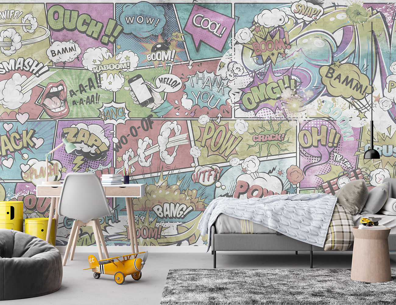 Alege „Pop Art” pentru a transforma orice încăpere într-un spațiu creativ și plin de viață. Este mai mult decât un simplu accesoriu decorativ – este o declarație de stil, potrivită pentru orice tapet pentru orice cameră și pentru cei care își doresc un decor contemporan autentic.